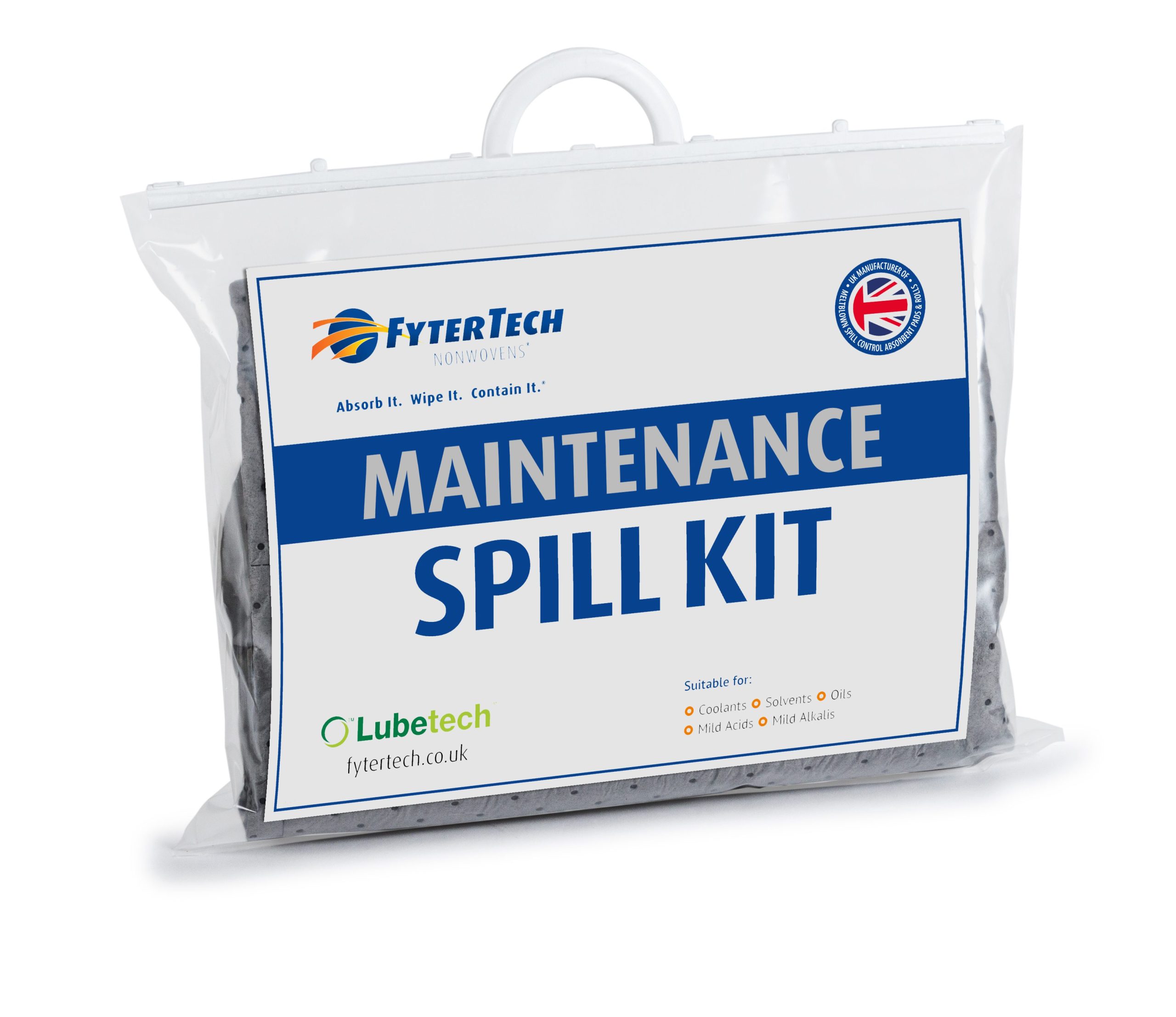 | Kit contents (where applicable) | 20 x Pads, 2 x 1.2m Socks, 1 x Haz Waste Bags, 1 x Clip Top Bag, 1 x Instruction Sheet, 1 x Tie |